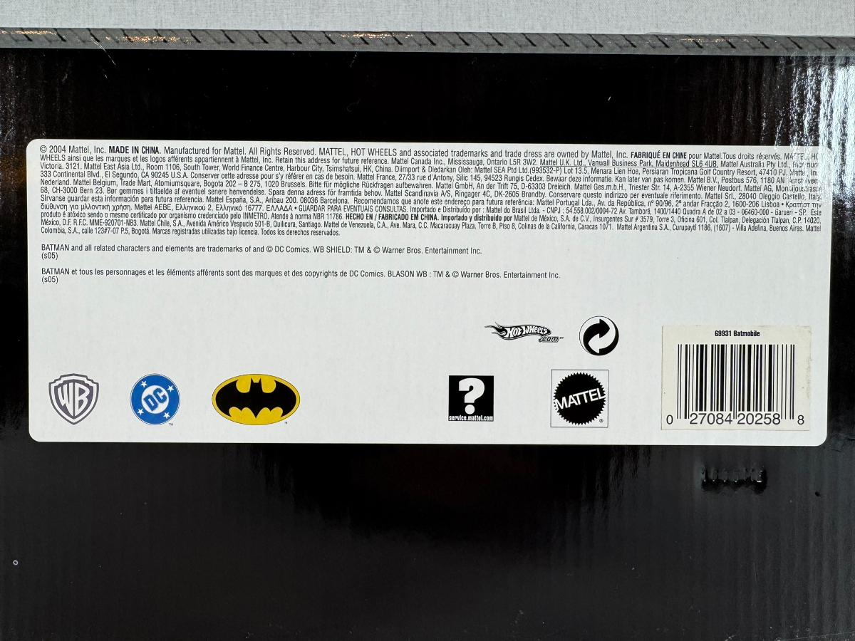 Batmobile: Batman, Hotwheels Metal Collection, 2004, Mattel, DC Comics, G9931, 1/18 scale. Based on the Batmobile from The Dark Knight.