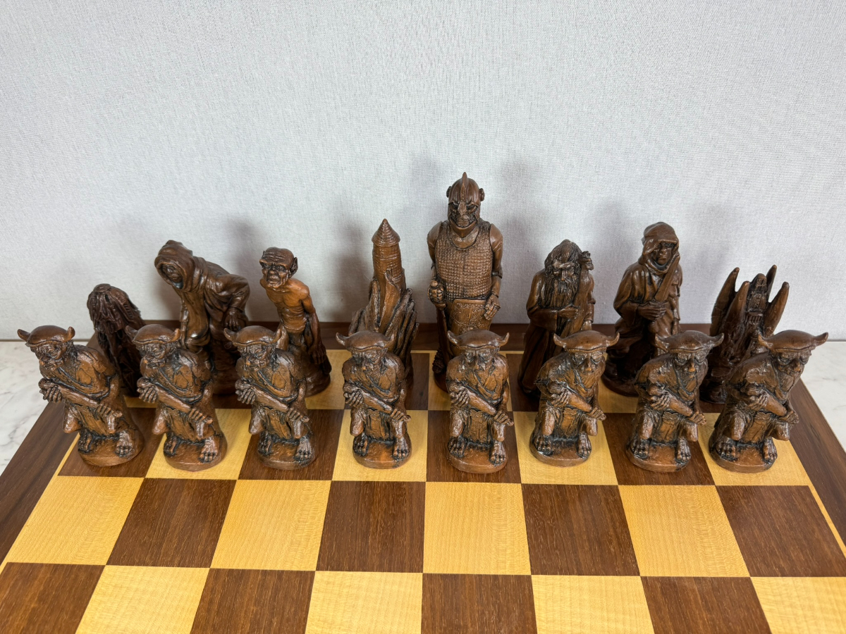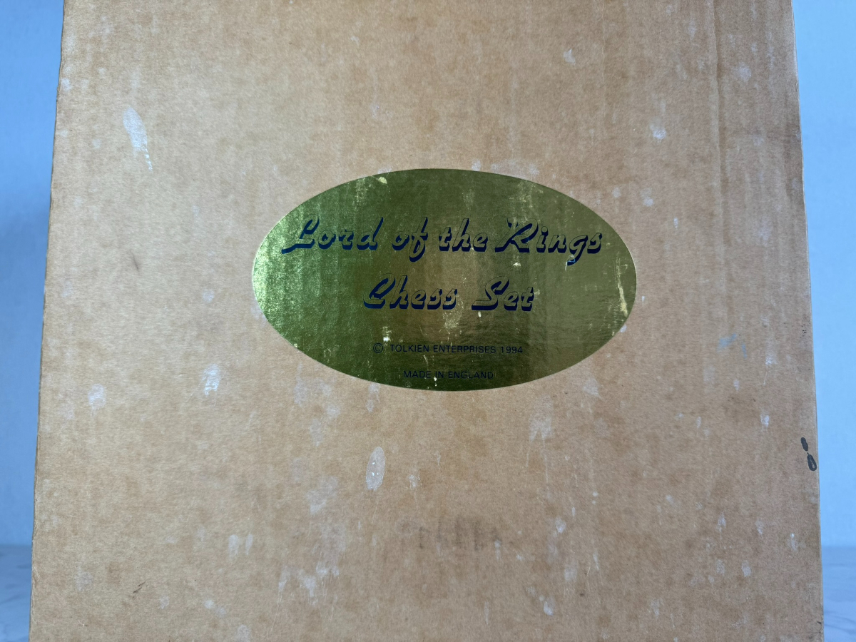 Tolkien Enterprises Chess Set – Lord of the Rings, Board is 55cm x 55cm, High quality resin figures dated 1988, Original shipping boxes dated 1994. SIAB (UK) Ltd, Sculpted by Dennis Fairweather. This is a rare and very good quality chess set with original packaging.
